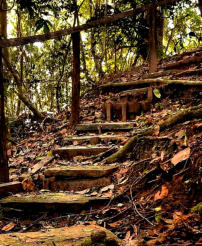 Es gibt eine Treppe, die den Zugang zum unteren Teil des